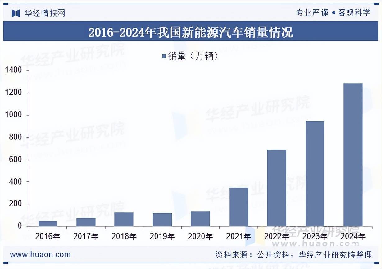 我国新能源汽车连续10年位居全球第一。2024年,在政策利好、供给丰富、价格降低和基础设施持续改善等多重因素共同作用下,新能源汽车持续增长,产销量突破1000万辆。2024年,新能源汽车销量完成1286.6万辆,同比增长35.5%,新能源汽车新车销量达到汽车新车总销量的40.9%,较2023年提高9.3个百分点。
